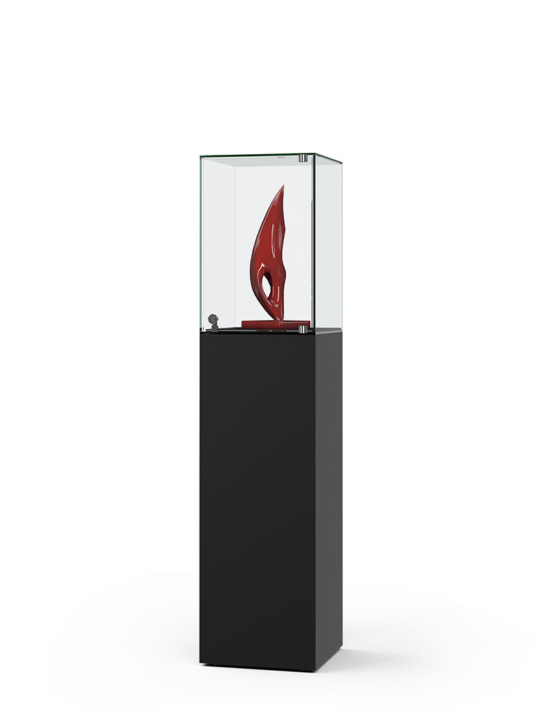 Haubenvitrine - Sockelvitrine - Stülpvitrine Haubenvitrine in transparenter Ganzglasbauweise mit ESG-Sicherheitsglasideale Lösung für Ausstellungen, Museen oder Ihr Büro.Glashöhe von 500 mmGlasaufbau unten offen zum Aufsetzen auf den Sockel – StülpvitrineOberfläche wahlweise in weiß, schwarz oder hellgrau (andere KS Dekore auf Anfrage) oder Lackierung in RAL-Farbton nach WahlAuf Wunsch in Sonderanfertigung nach Maß > Haubenvitrinen Größen B/H/THaubenvitrine - 400 × 1600 × 400 mm B/H/THaubenvitrine mit Beleuchtung - 400 x 1600 x 400mm B/H/THaubenvitrine - 500 × 1600 × 500 mm B/H/THaubenvitrine mit Beleuchtung - 500 x 1600 x 500mm B/H/T Öffnung - Glasaufbau unten offen, zum AufsetzenVerglasung - Einscheiben-Sicherheitsglas / ESGOberfläche - Korpus aus Holz melamin weiß, schwarz, hellgrau oder nach RALBeleuchtung - ohne Beleuchtung - optional: Beleuchtung mit einem LED-Strahler, inkl. Trafo an senkr. StrahlerschieneSchließung - Sicherheitsschlösser gegenüberliegend mit 2 Schlüsseln
