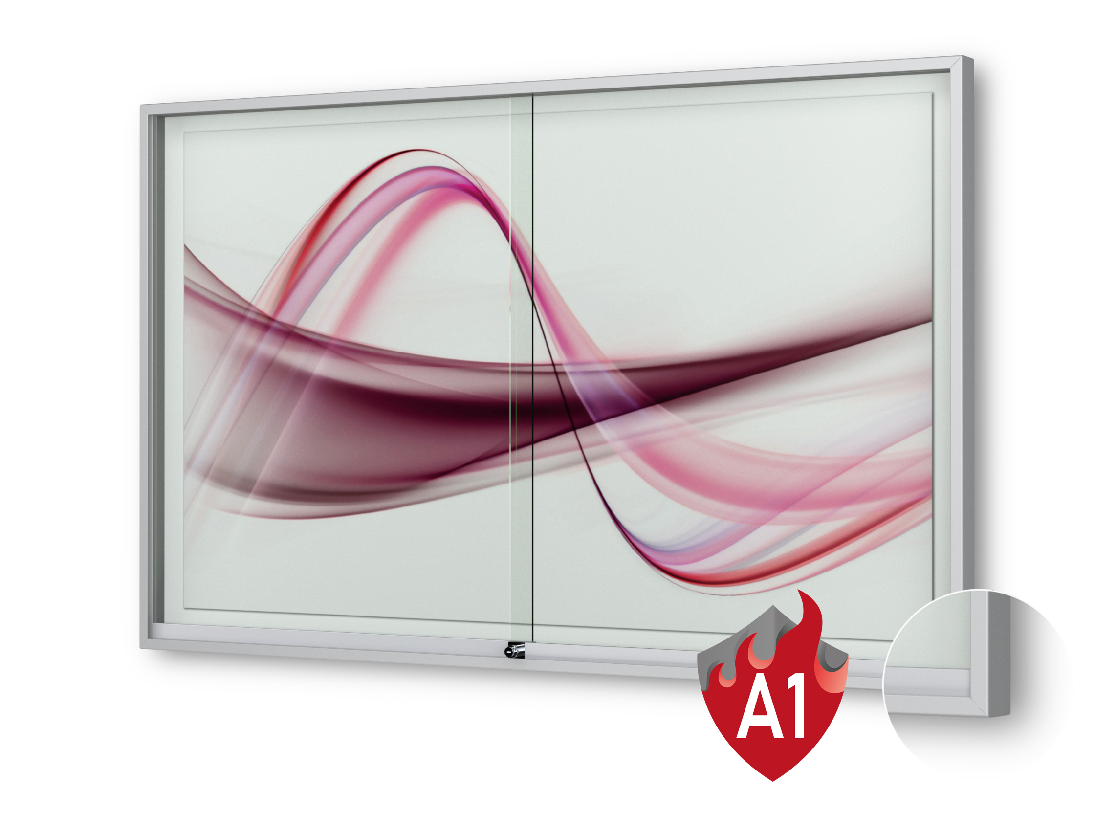 | Plakatvitrine: | Brandschutz, Montageort: Innen, Wandmontage, abschliessbar, mit Schiebetüren |