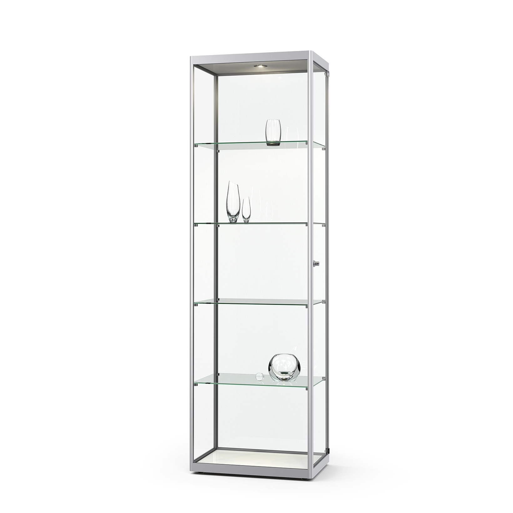 Schlanke Säulenvitrine mit schmaler Profilbreite von nur 22 mm